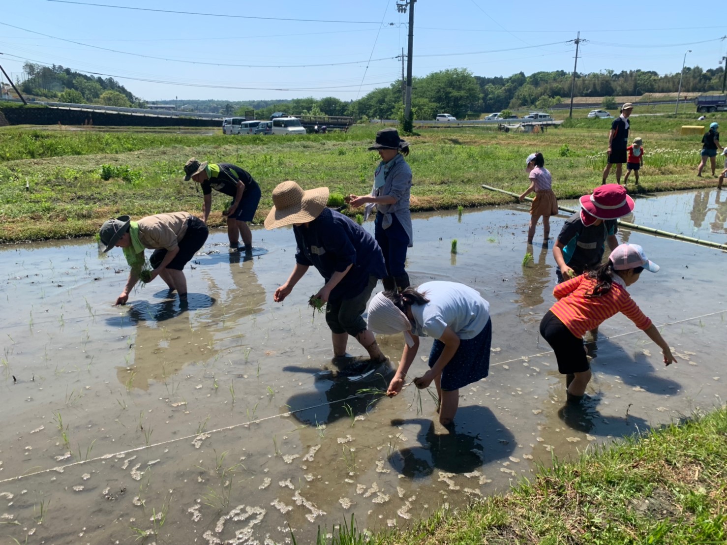 場所:大津市伊香立 参加者 子ども16名 大人 17名たんぼは、蛍が飛び交う環境のいいところにあります。五月晴れのもと、滋賀羽二重糯の苗を実際に手で植え付けました。そのあとは機械による田植えの見学やじゃんけんゲームも。そ…