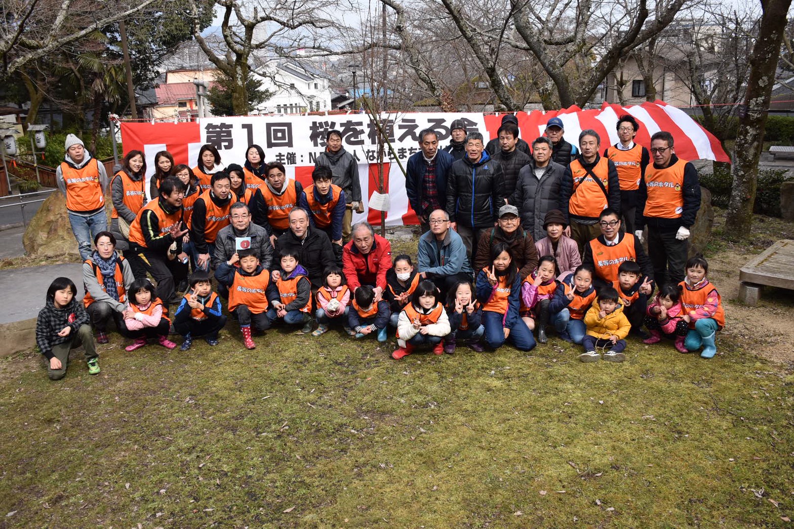 4年前から長等公園にほたるをとばす活動を続けています。今回はたくさんの子どもたちも参加して、ほたるのエサのニナガイの放流と桜の植樹をしました。