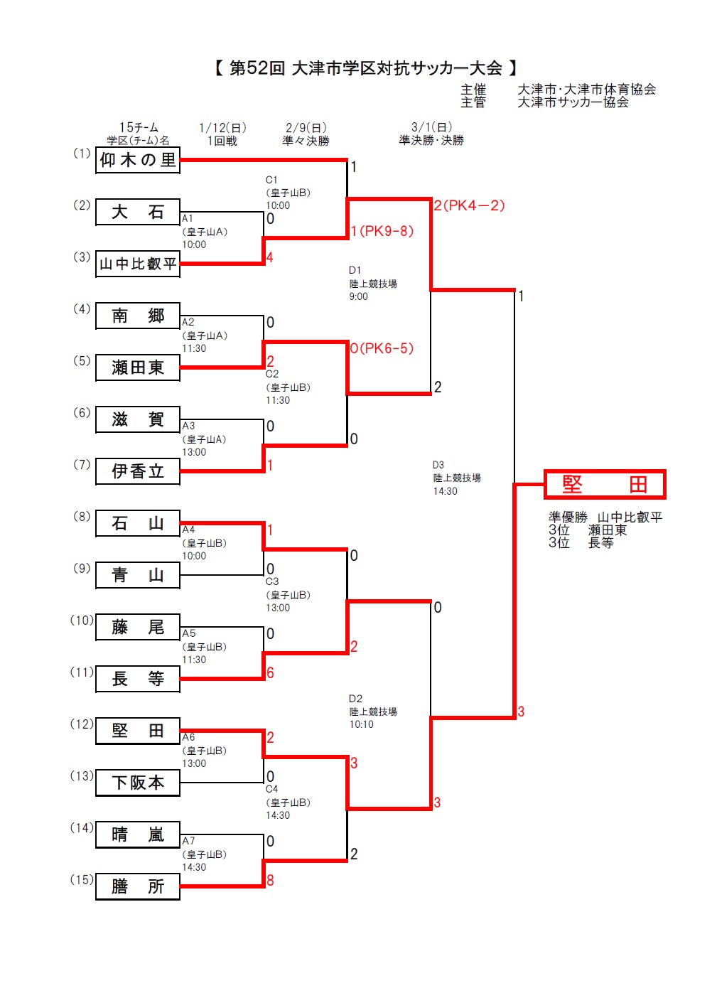 おかげさまで2年ぶりにベスト4入りし、皇子山陸上競技場のピッチに戻ってきました。善戦したものの昨年度及び今大会の優勝チームである堅田学区に0-3と敗れました。優勝の堅田学区は大津市代表として県民体育大会へ参加されます。ご健闘をお祈りします。