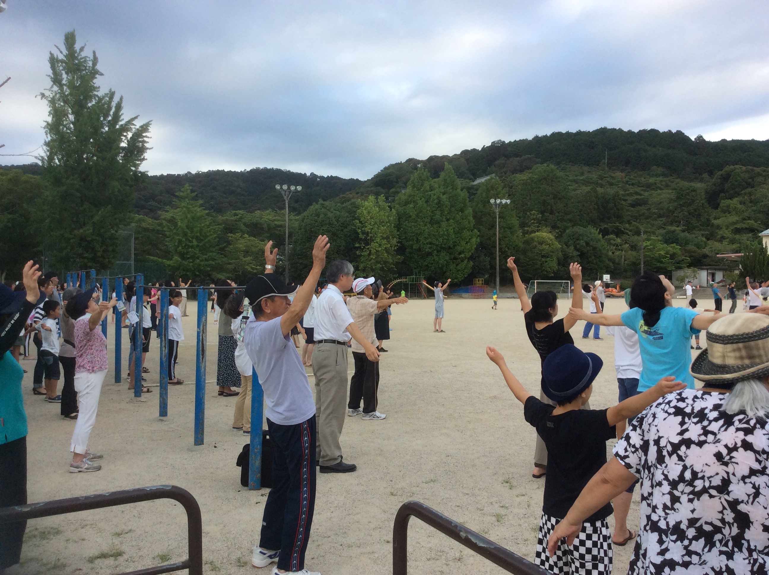 連日多くの方にご参加いただき、ありがとう ございました。小さい子どもから、高齢者の方までが早朝から一緒に体操をする、長等学区らしい光景が今年も見られました。